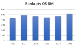 Graf: Počet bankrotů obchodních společností za 8 měsíců (zdroj: CRIF)